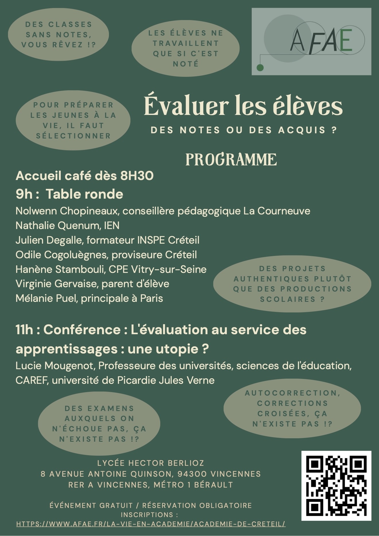 Un réseau de correspondants en académie propose des activités comme les mercredis de l’AFAE, des colloques interacadémiques, des conférences débats dans votre région. Contactez votre responsable académique AFAE pour plus d’informations.